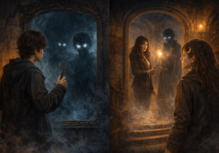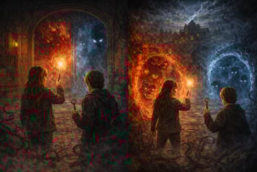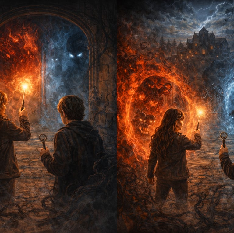 The manor itself seemed alive, shifting corridors and staircases like Hogwarts, yet darker, more unpredictable. Sometimes the walls whispered names, sometimes they screamed.