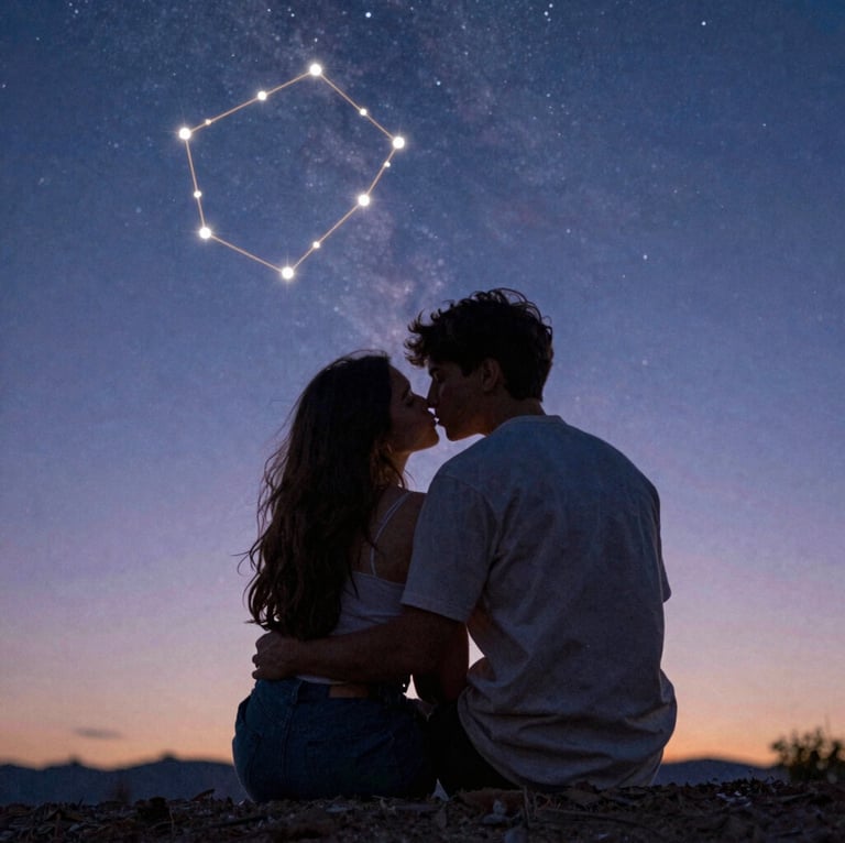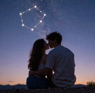 They kissed — not like mortals, but like myths. The kind of kiss that rewrites constellations. That teaches the sky how to feel. That makes the stars blink in wonder.